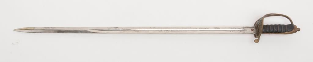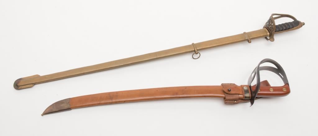 Lot of 2 military style swords with scabbards, age and origin unknown. Est.: $75-$150.