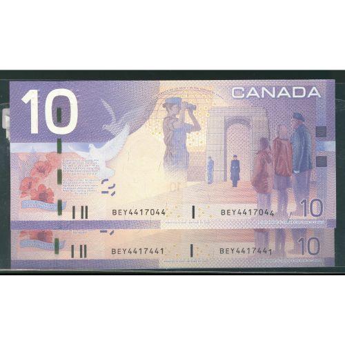 Lot of 2 notes 2005 $10 BC-68A with last digit on the right side half way down (ERROR), BEY4417044-4417441, UNC