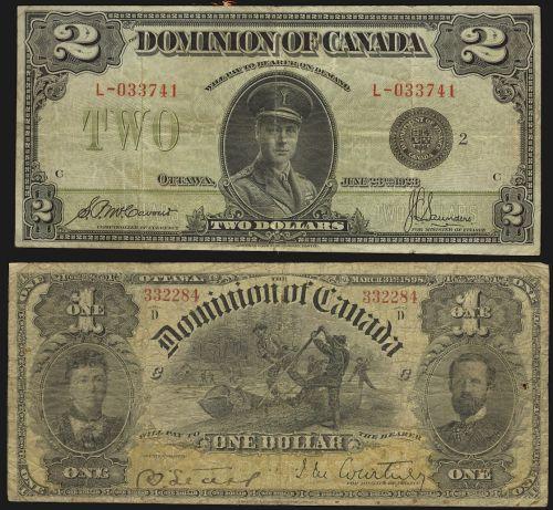 Lot of 2 notes, DC-13a 1898 $1, Dc-26f 1923 $2. Grades vary from Abt. VG to Fine.