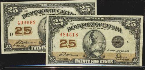 Lot of 2 notes, DC-24c 25 cents "McCavours" both EF-AU