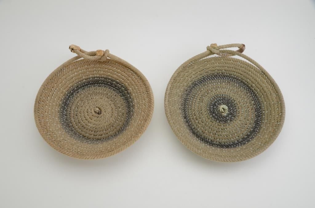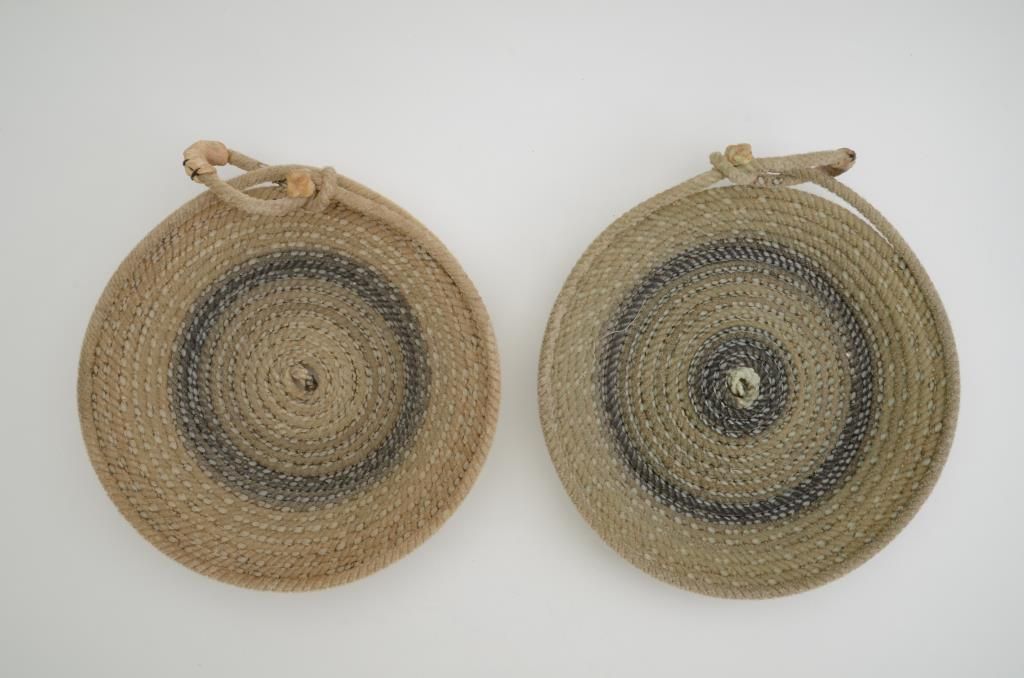 Lot of 2 nylon rope baskets, one approx. 12” and the other approx. 13” in diameter and each approx. 2-1/2” in depth. Est.: $