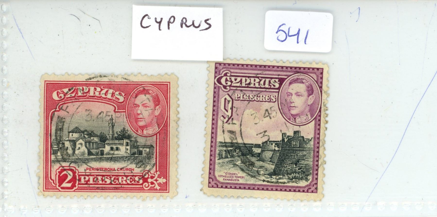 Lot of 2 old Stamps from Cyprus. George VI. Used.