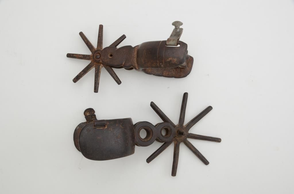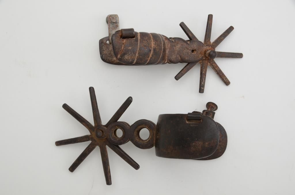 Lot of 2 old large Spanish heavy iron forged spurs in uncleaned condition. Est.: $125-$250.