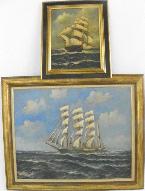 "Sailing Ships". 1- Approx. 15" x 17". 1- Approx. 21.5" x 27" H. From Sutton Place, NYC estate. Please read our terms of sale.