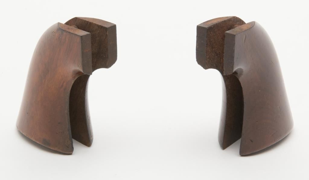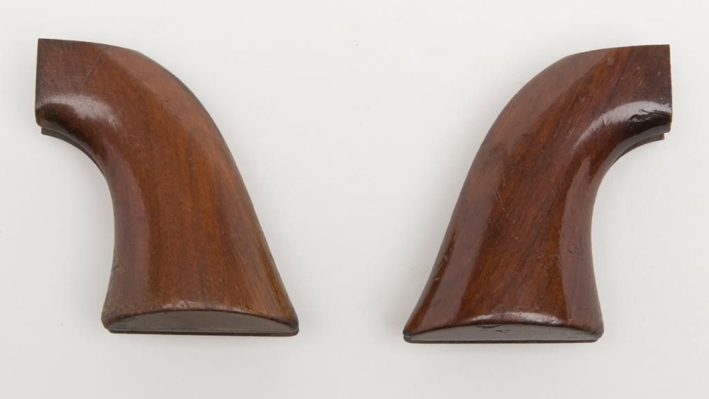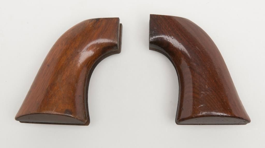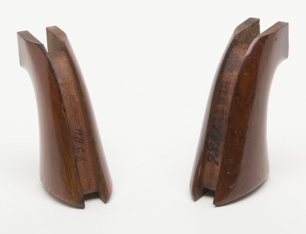 Lot of 2 pair of Colt SAA blackpowder revolver wood grips, both in overall very good + condition, one with the #9XXX inked on the inside block, the other with the #7506. From the estate of Joe Kiser. Est.: $500-$1,000.