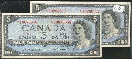 Lot of 2 replacement 1954 $5 notes BC-39bA including *N/X, V/S. Grades are VF or better.
