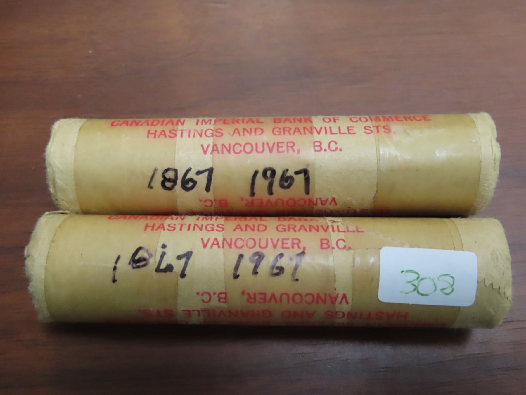 Lot of 2 rolls CIBC 1867-1967 1 cent