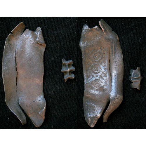 Lot of 2 salvaged pieces, one of which is very small but shows obvious craftsmanship but un identifiable and the second seems to be part of cutlery that has broken off with time, it does show some craftsmanship and markings. (Aug00752/00826)<BR><BR>Notice. For all winners of lots pertaining to the Auguste Shipwreck, please be advised that due to Canadian Laws in reference to the Exportation of Archeological and Shipwreck finds, a request for permission to export these items must to be filled and sent into Canadian Customs for approval for every lot won and shipped outside Canada. In most cases this will cause a delay of 10 to 20 business days for all shipment of lots once payment received. We have been in discussion with Canada Customs and anticipate no problems. We ask for your patience and will do our best to keep each buyer updated on their lots. Please contact us for further information if necessary.
