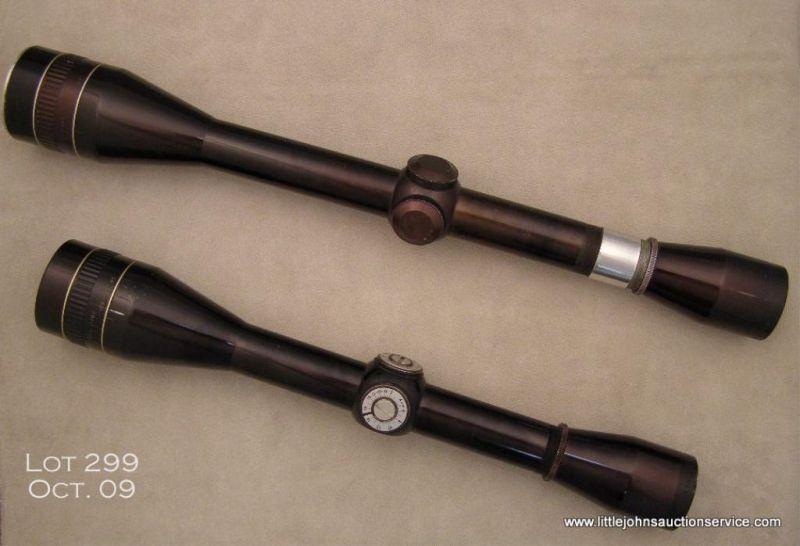 Lot of 2 scopes; one Leupold 12X, which is in fair to good condition, showing finish wear. The other a Leupold 10X, in good condition but missing both windage and elevation adjustment caps. Est. $250-$500.