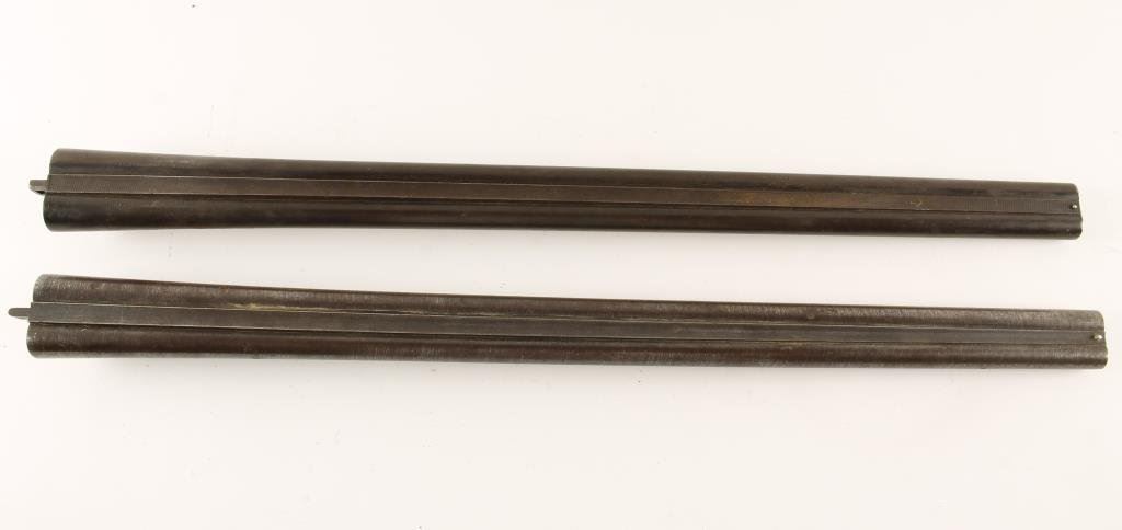 Lot of 2 side-by-side barrels, one set damascus, the other steel. Est.: $100-$200.