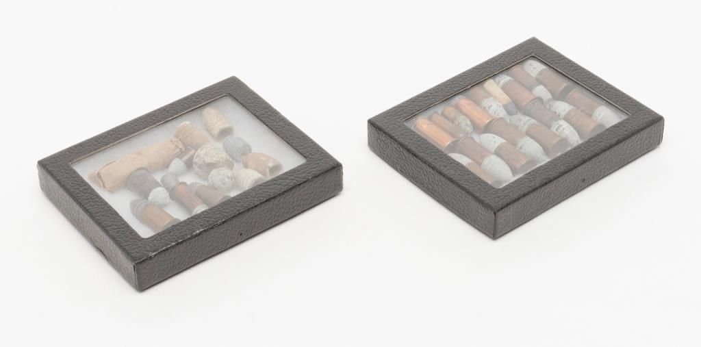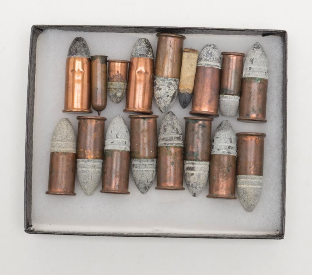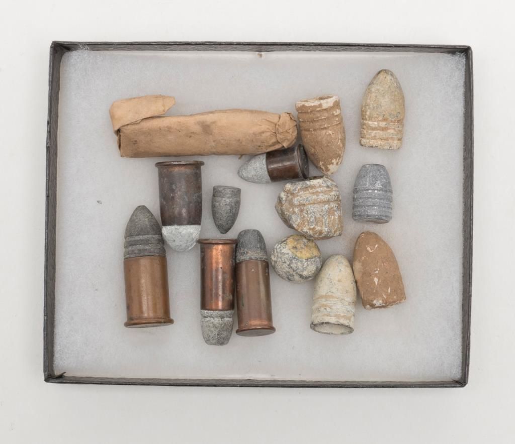 Lot of 2 small Riker cases of approx. 31 authentic Civil War-era cartridges and bullets of various calibers; a great grouping from a well-known local collector. Est.: $150-$300.