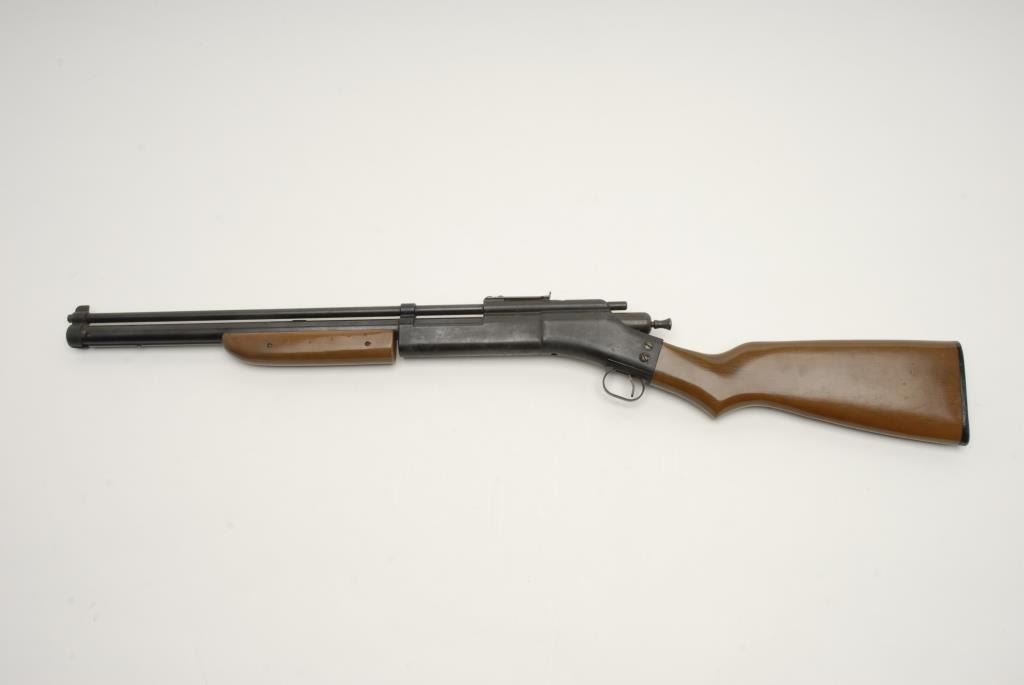 Lot of 2 vintage air rifles including a Benjamin brand in fair to good condition with working pump action at time of description and an unmarked air rifle in fair to good condition with pump action not holding charge at time of description; neatold collector pieces. Est.: $75-$150.