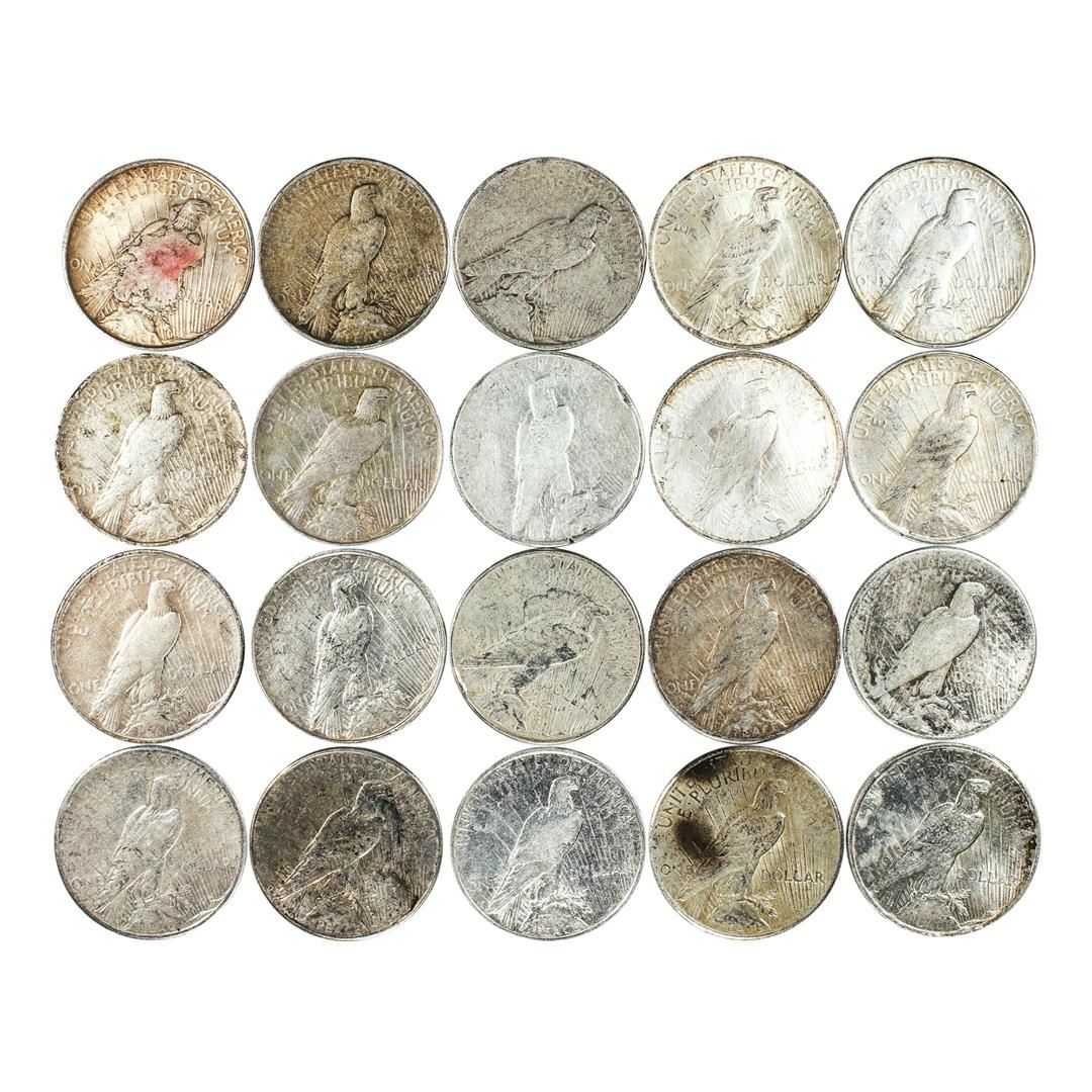 One Lot of (20) $1 Peace Silver Dollar Coins Culls.