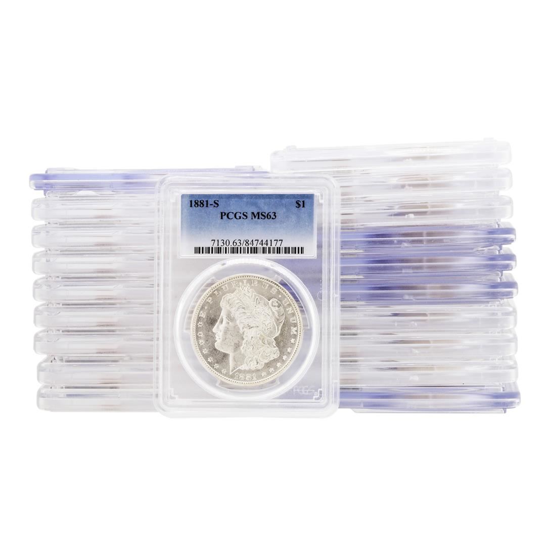 One Lot of (20) 1881-S $1 Morgan Silver Dollar Coins PCGS MS63. PCGS Graded.