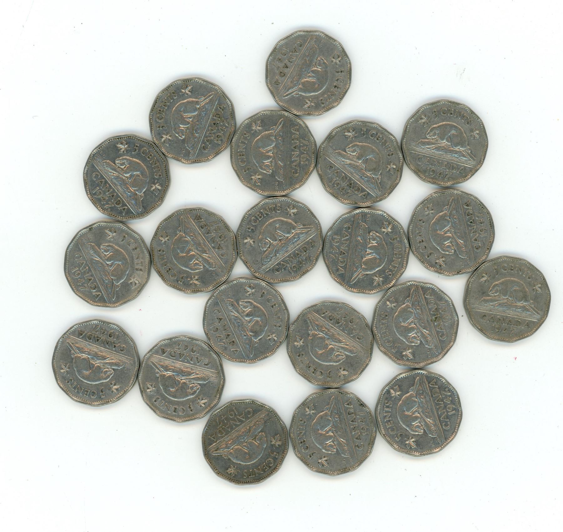 Lot of 20 (1947) nickel 5 cents