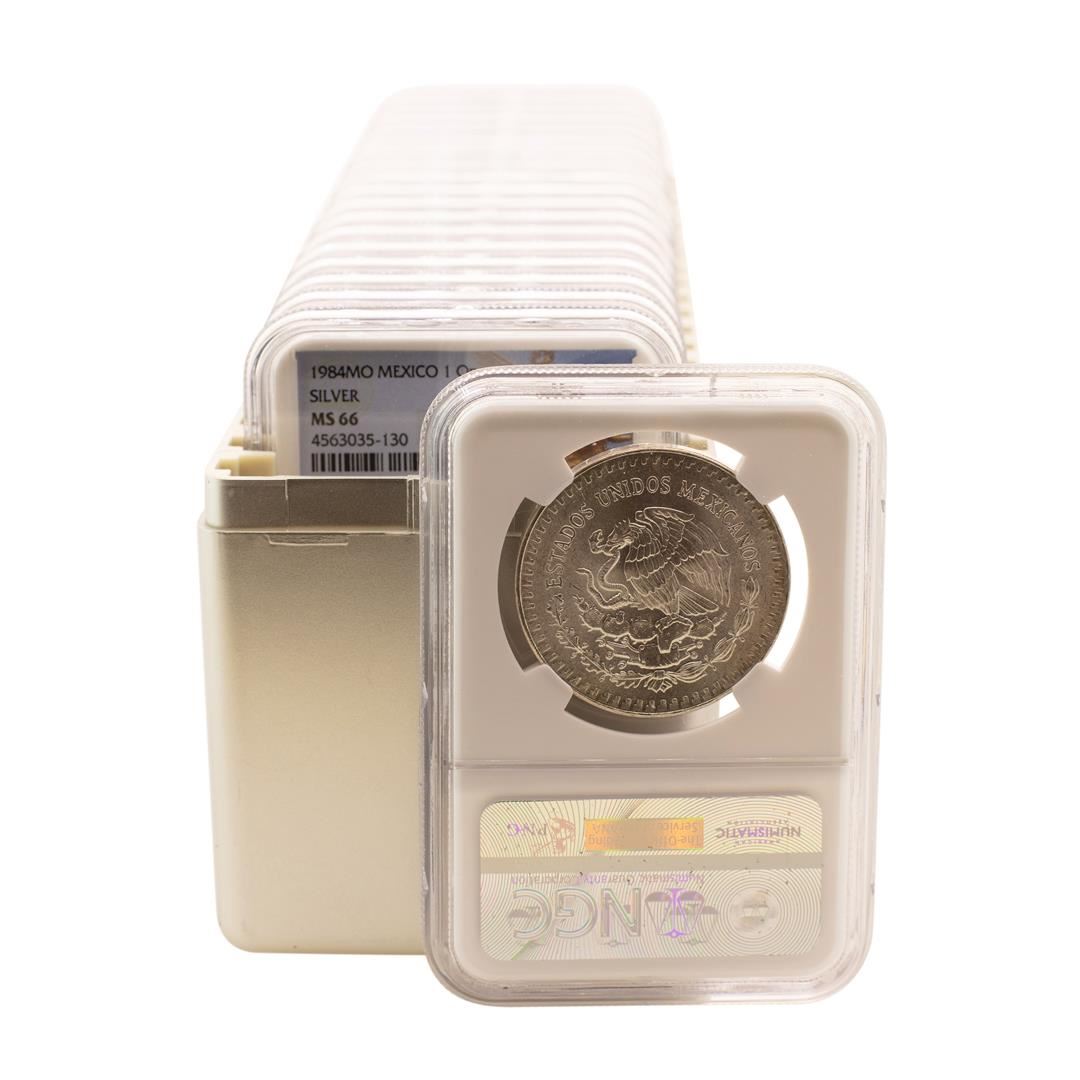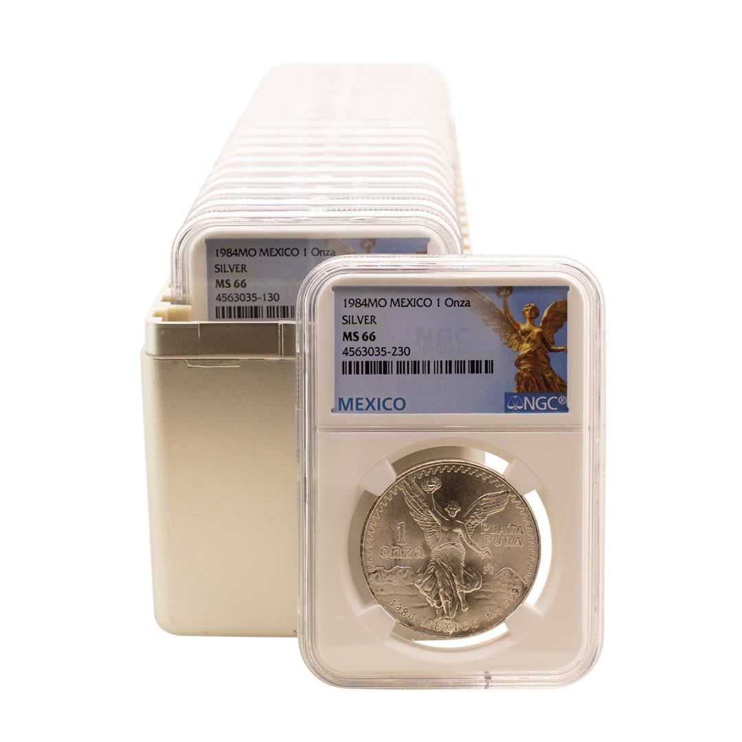 Lot of (20) 1984Mo Mexico 1 Onza Libertad Silver Coins NGC MS66