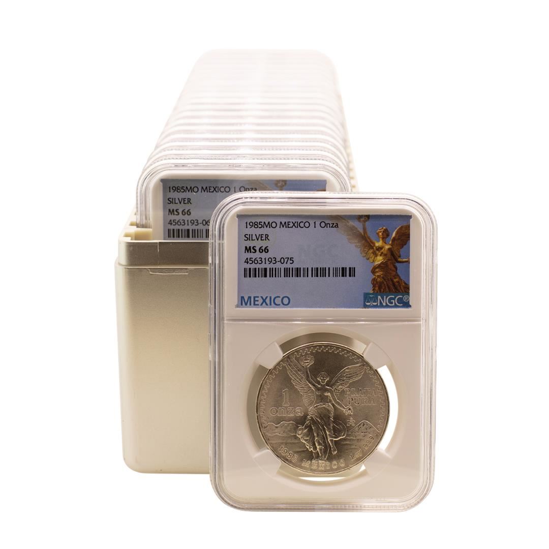 Lot of (20) 1985Mo Mexico 1 Onza Libertad Silver Coins NGC MS66