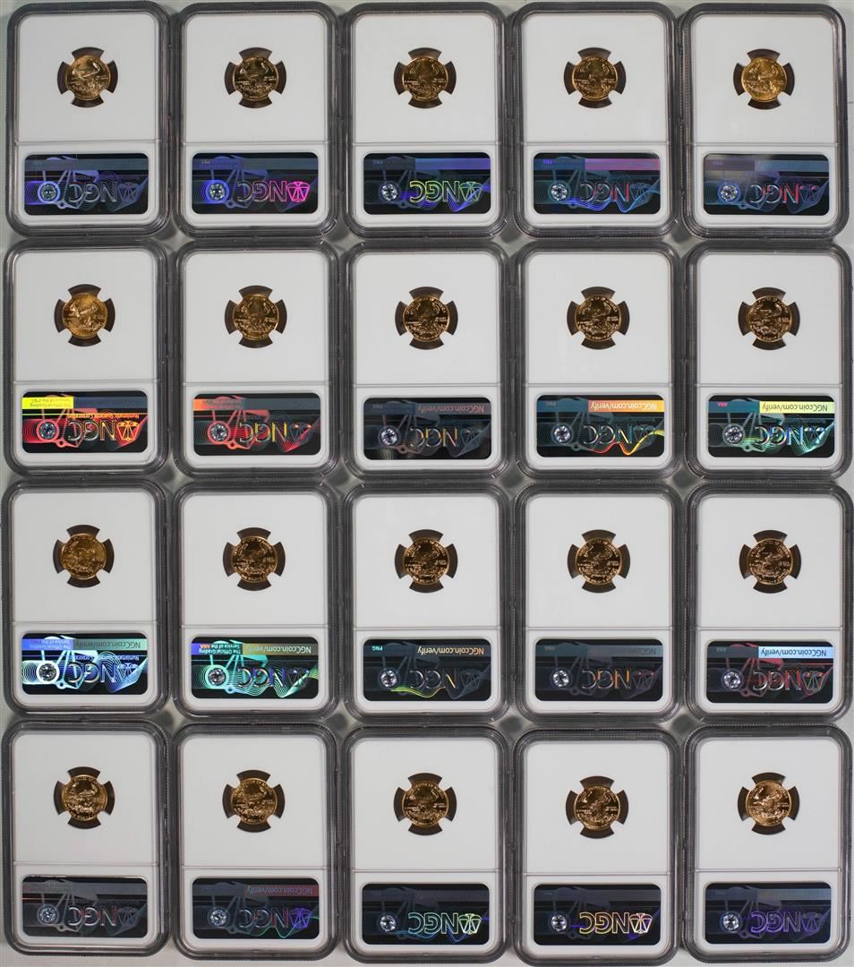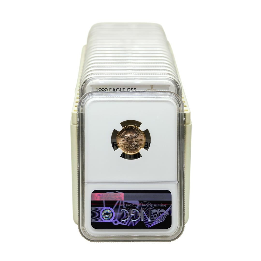 One Lot of (20) 1999 $5 American Gold Eagle Coins NGC MS69. NGC Certified.