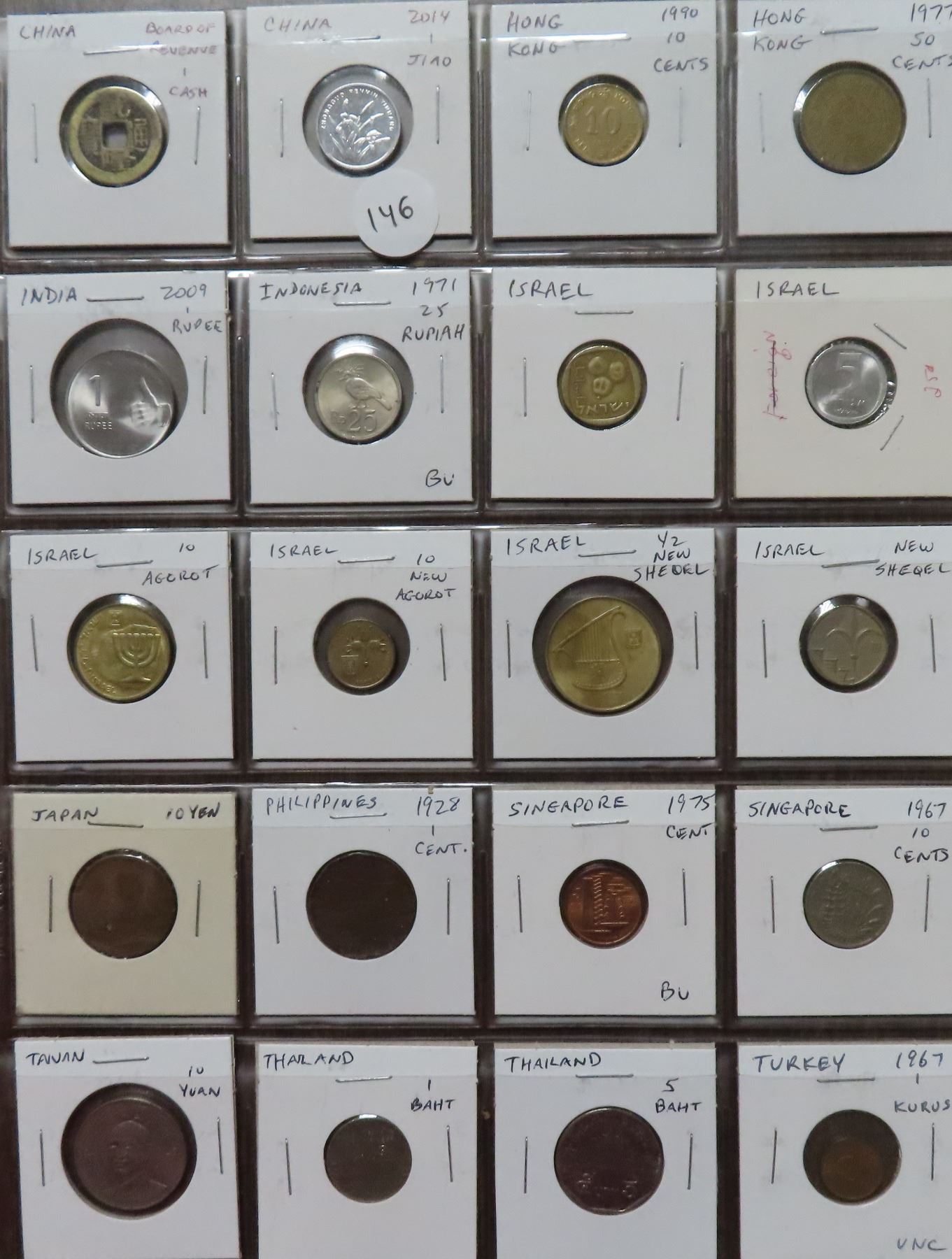 Lot of 20 Asian coins from China (including Board of Revenue Cash), Hong Kong, India, Indonesia, Israel, Japan, Philippines, Singapore, Taiwan & Thailand.