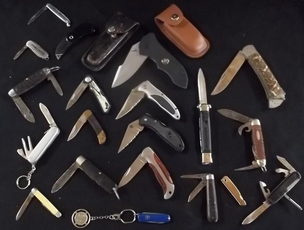 Lot of 20 Assorted Pocket Knives and 2 Cases