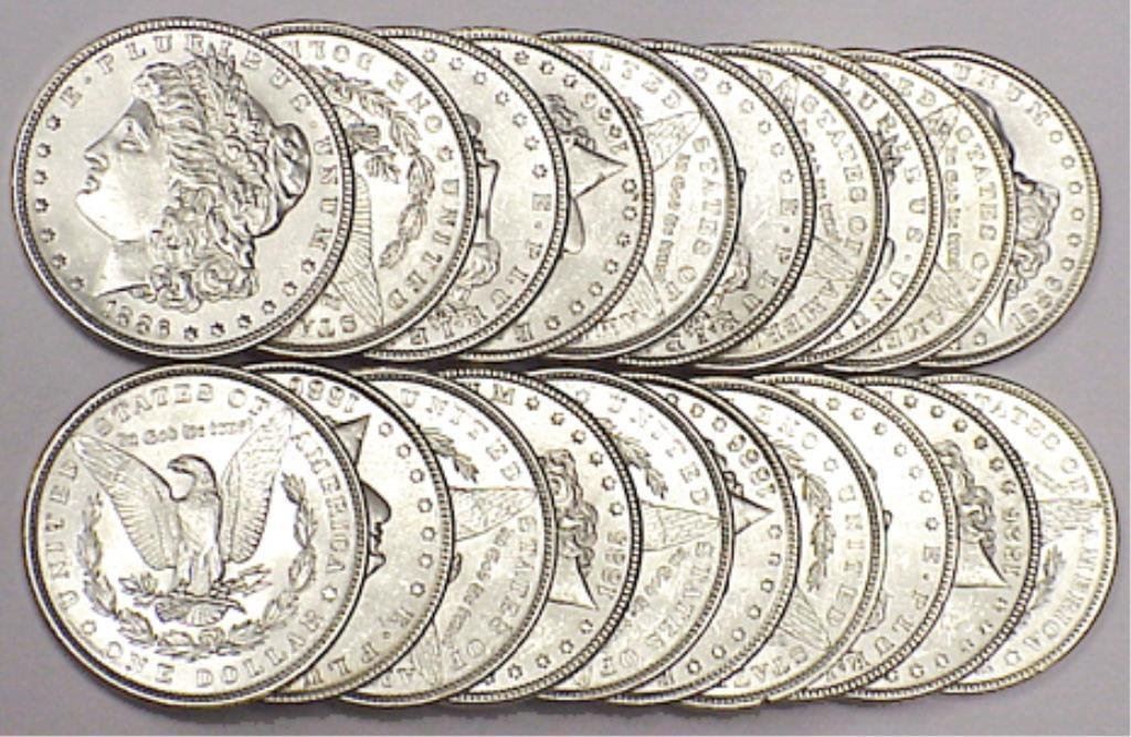 A lot of 20 mixed date 1880-90's Brilliant uncirculated morgan dollars