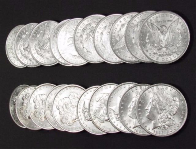 A lot of 20 mixed date 1880-90's Brilliant uncirculated morgan dollars