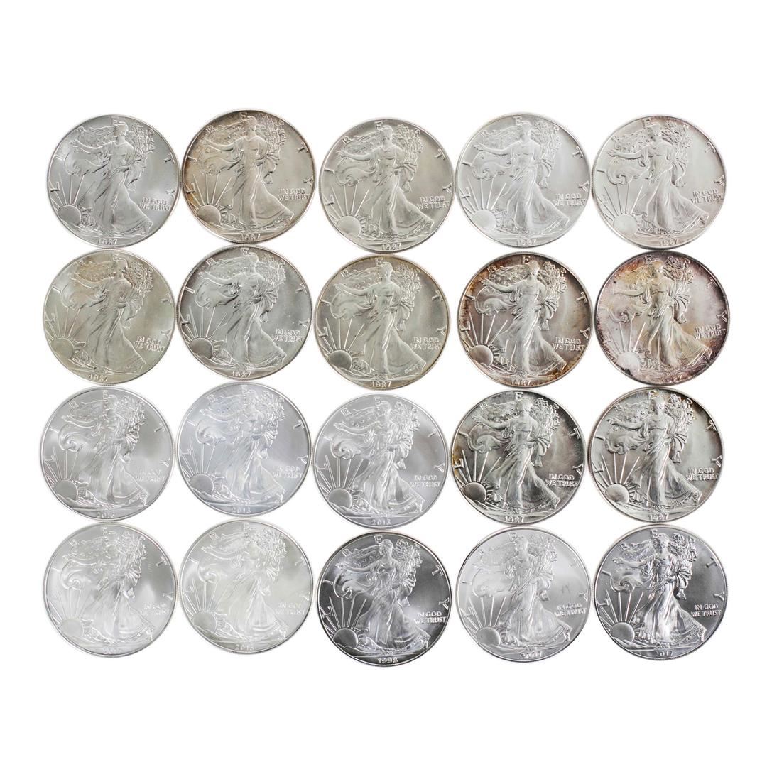 Lot of (20) Brilliant Uncirculated Mixed Date $1 American Silver Eagle Coins