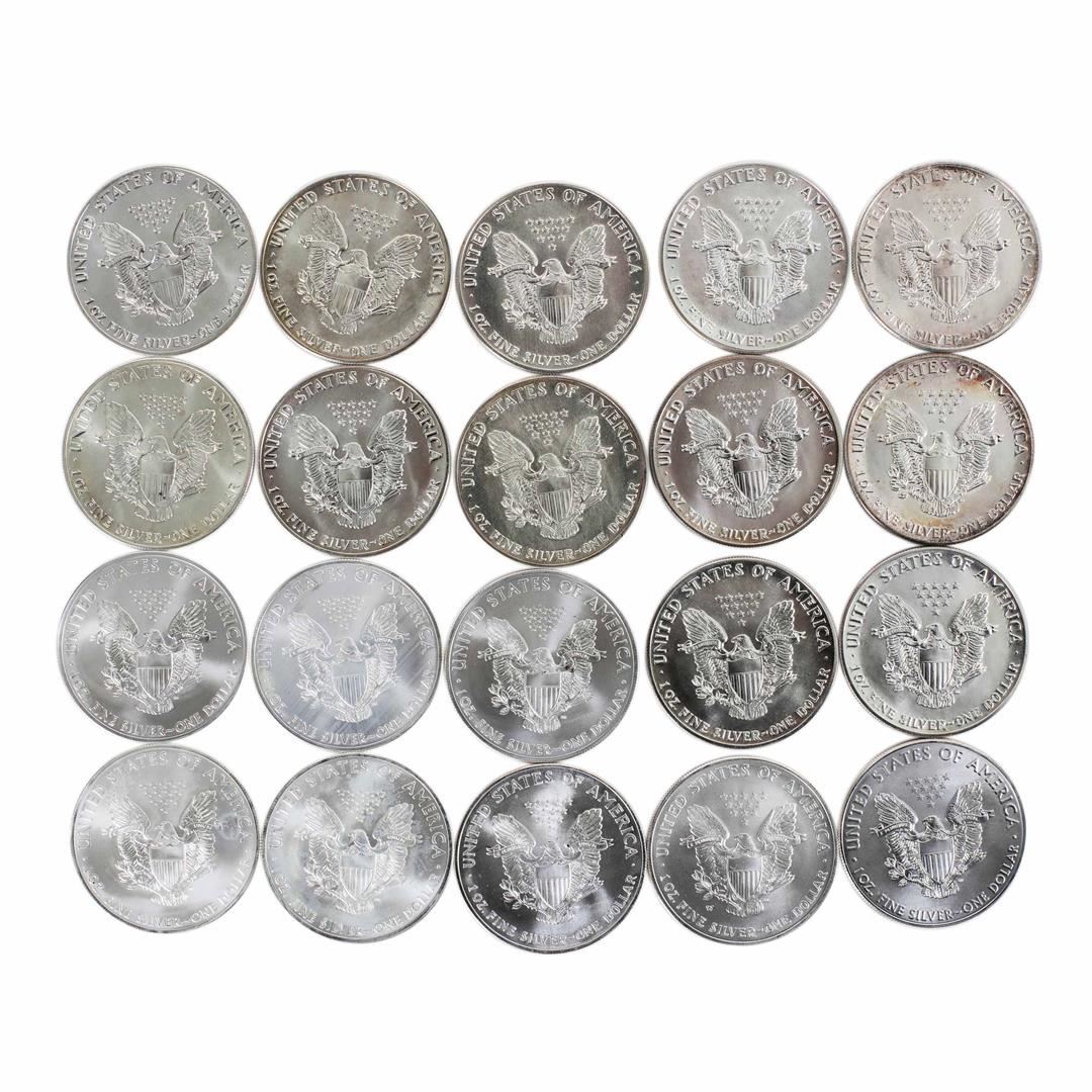 Lot of (20) Brilliant Uncirculated Mixed Date $1 American Silver Eagle Coins