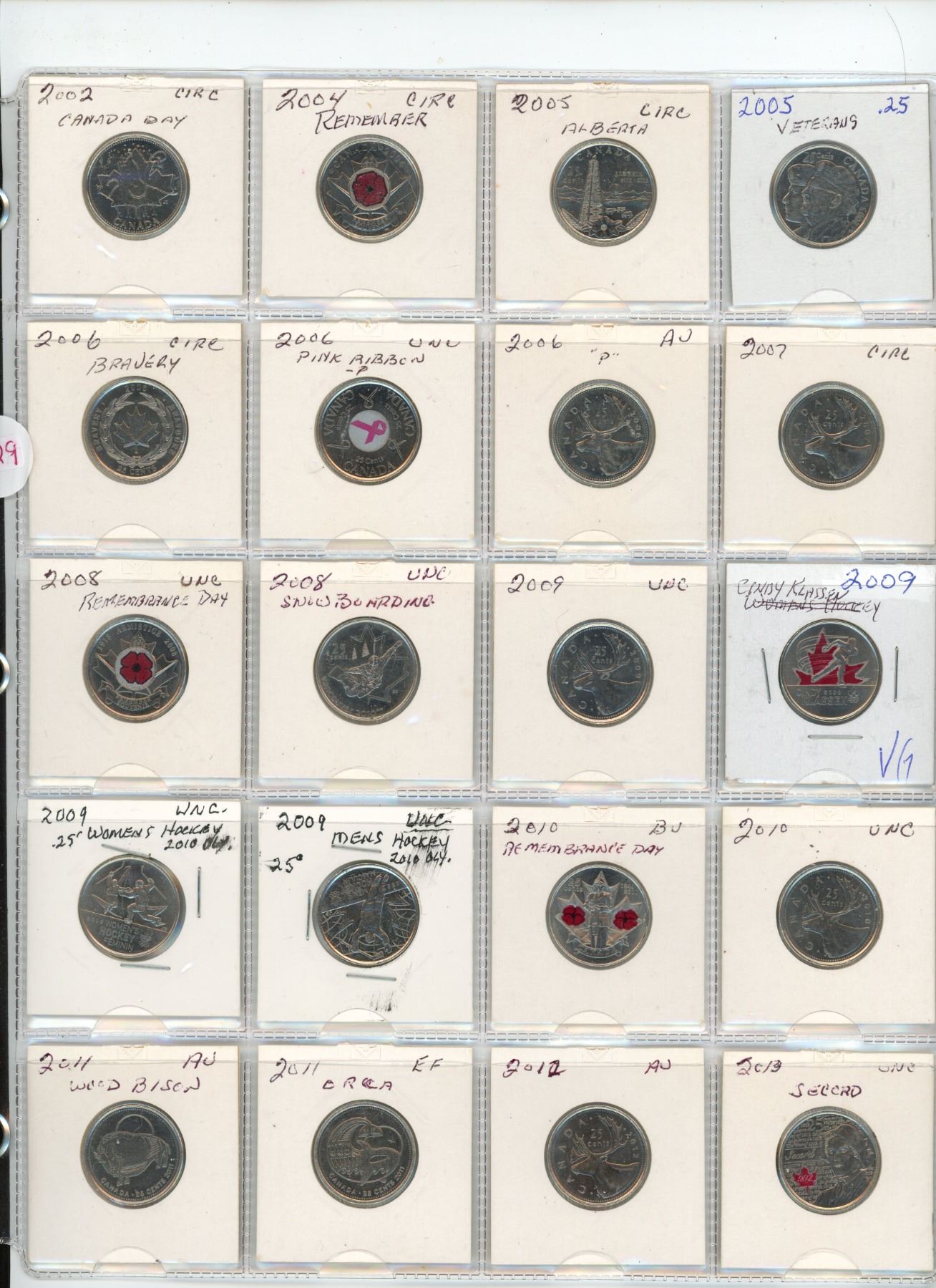 Lot of 20 Canadian 25 coins 2002-2013- mostly special quarters