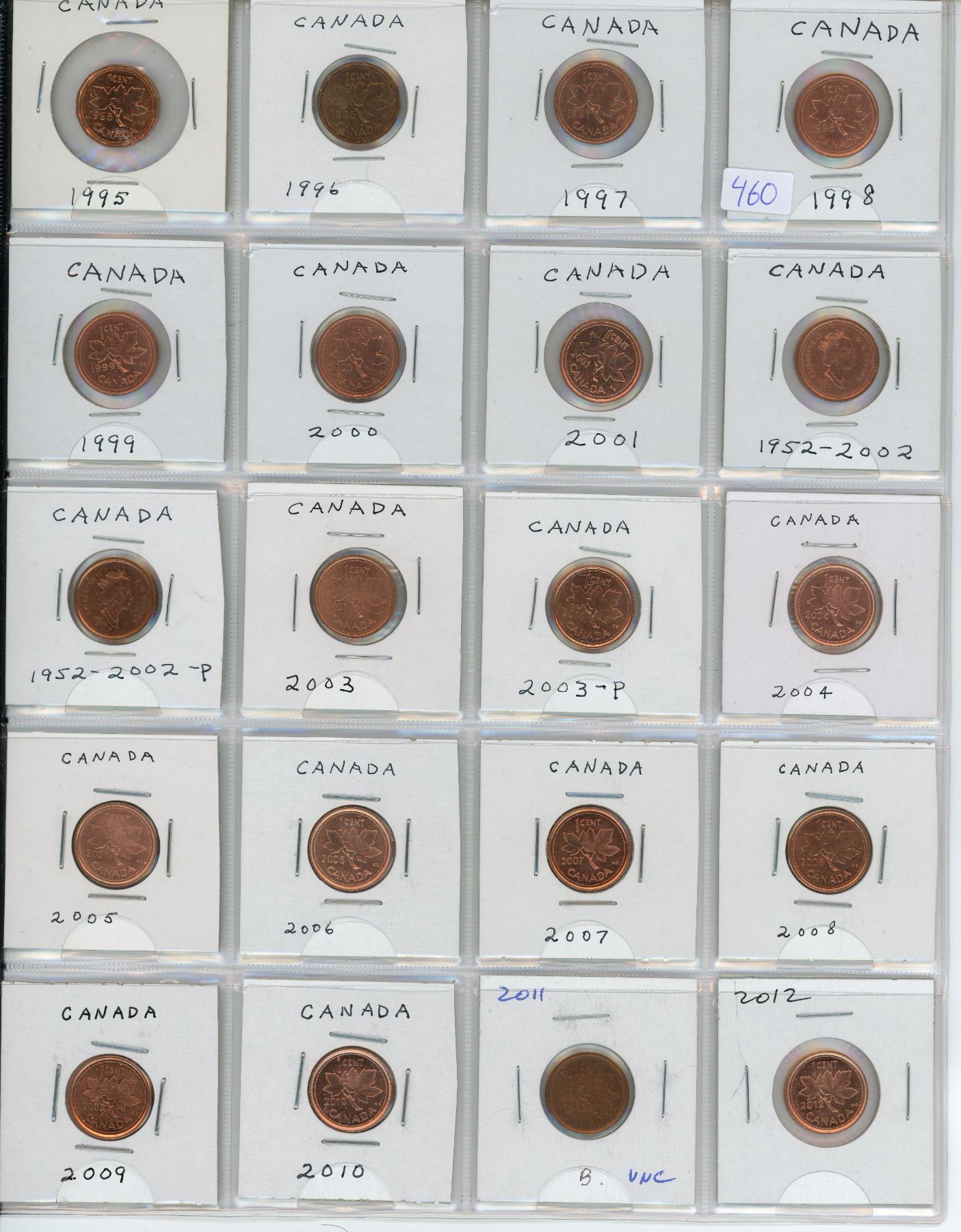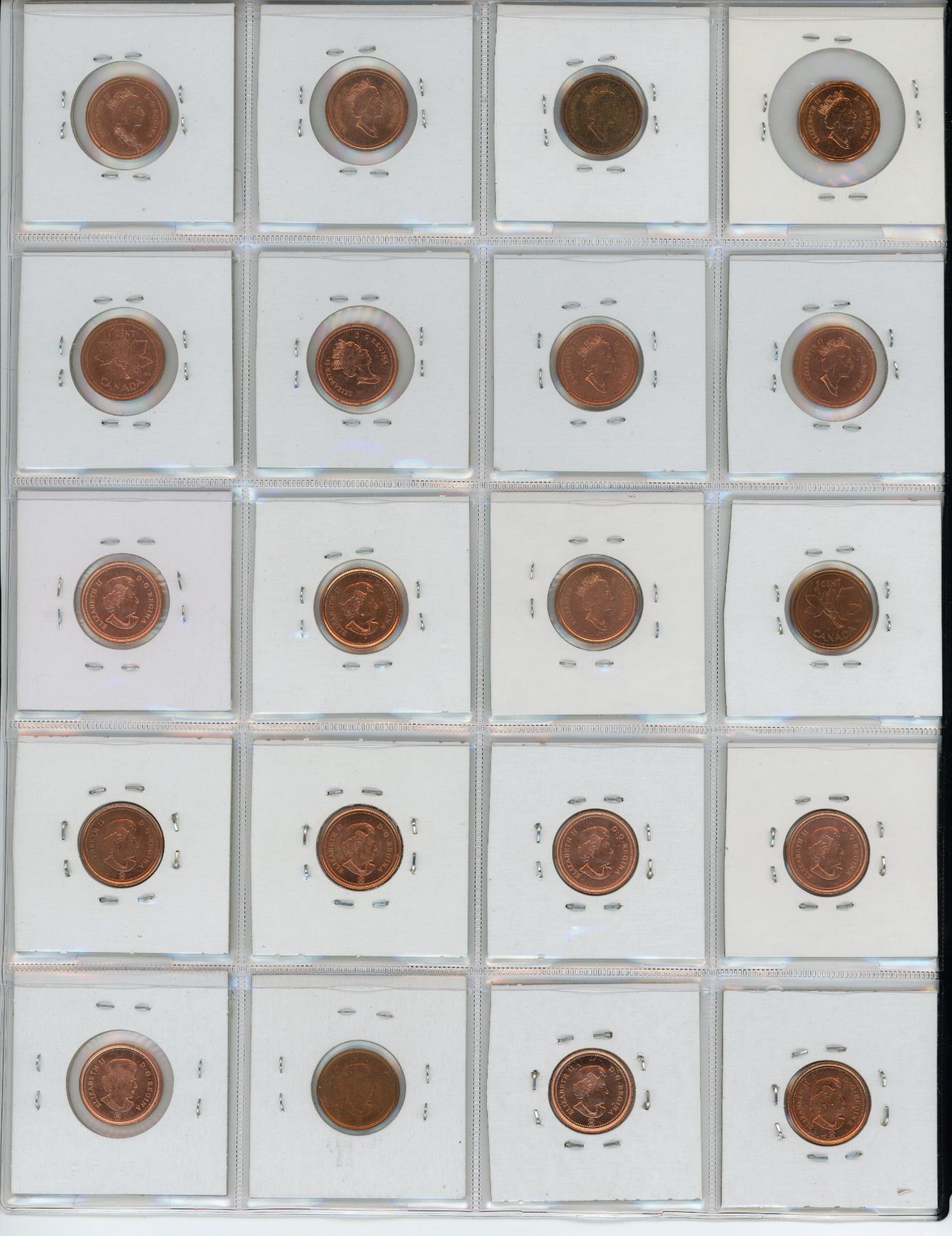 Lot of 20 Canadian Small Cents 1995 – 2012. All are BU Red.