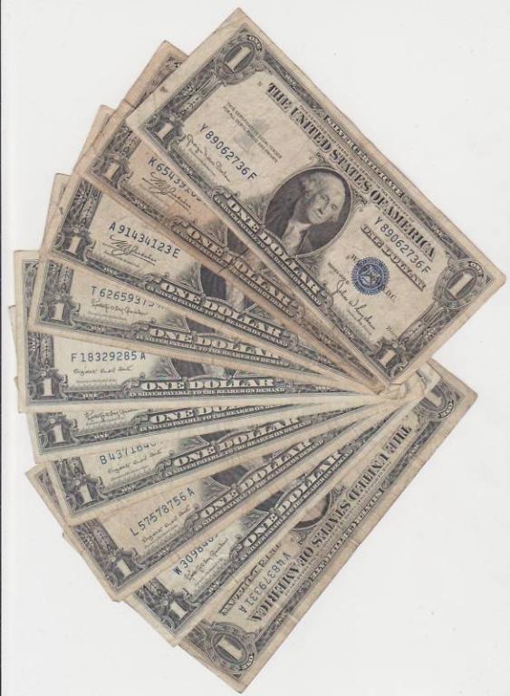 A lot of 20 circulated Silver Certificates- 1935-1957 assorted dates and MInts All of our items are Official US Asset Forfeiture & Seizures acquisitions. They are not privately held items. They may have belonged to bankrupt asset dealers, coin collectors, coin dealers, drug dealers, con men and the like. We acquire these assets and are ordered by the administrator to sell them at auction. We have a 38,000 person client list that buy regularly from us. Most of the items we selhave prebids, mail bids, left bids and internet bids. On rare occassion items will have no starting bid and will be passed. These items are offered back up at a later date. We sell millions of items annually and do not have the time checkeach lot for key dates, mint marks, error coins and more. This is the allure of our sales. Read our Testimonials on our website. We sell quality tangible assets for less. An investment opportunity that is sure to delight the beginningcollector or investor, all the way to the seasoned , experienced investor. We sell all types of assets from collectibles to land. With a bit of all in between. Look us up at our website, see what they are saying, and acquire your investment
