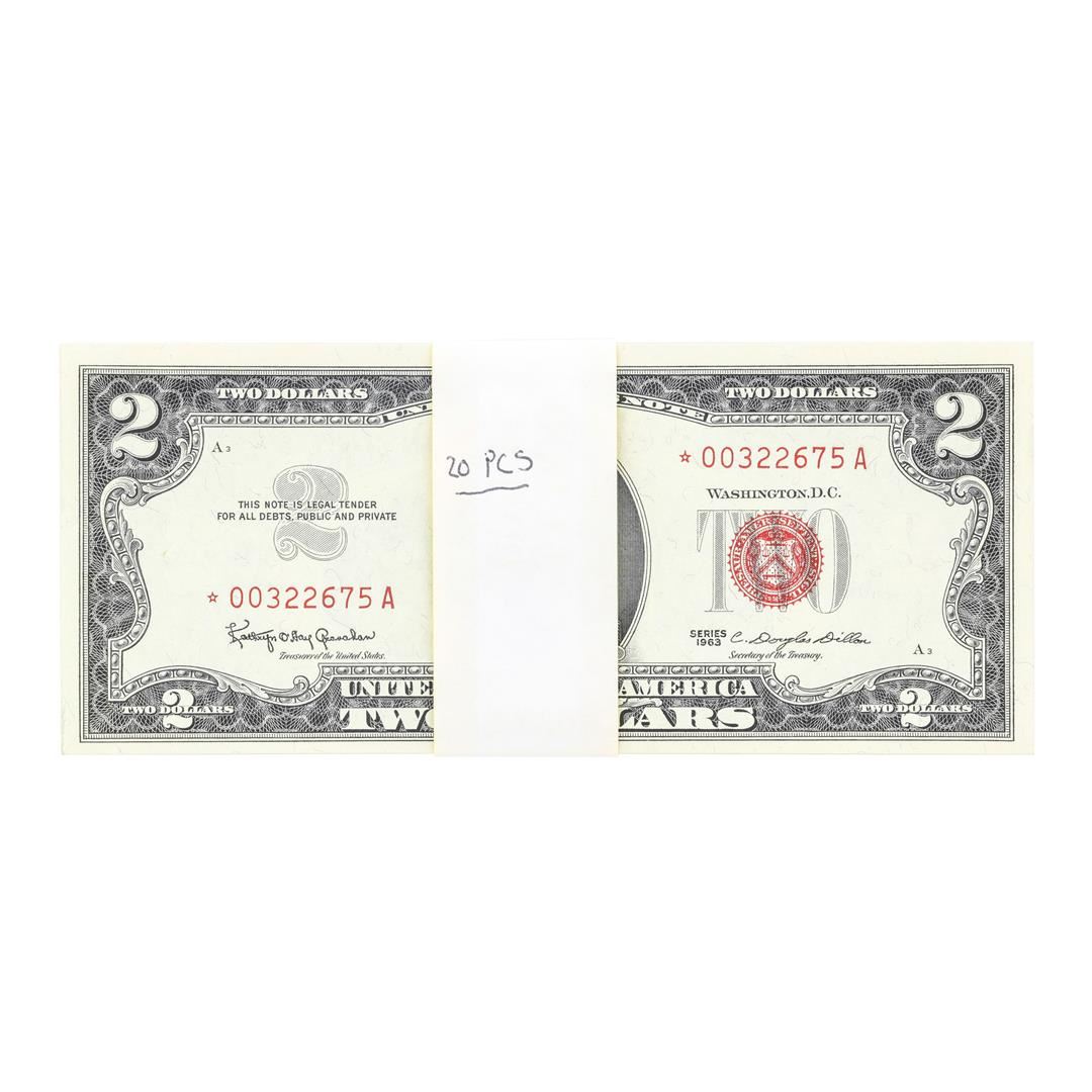 One Lot of (20) Consecutive 1963 $2 Legal Tender STAR Notes Uncirculated.