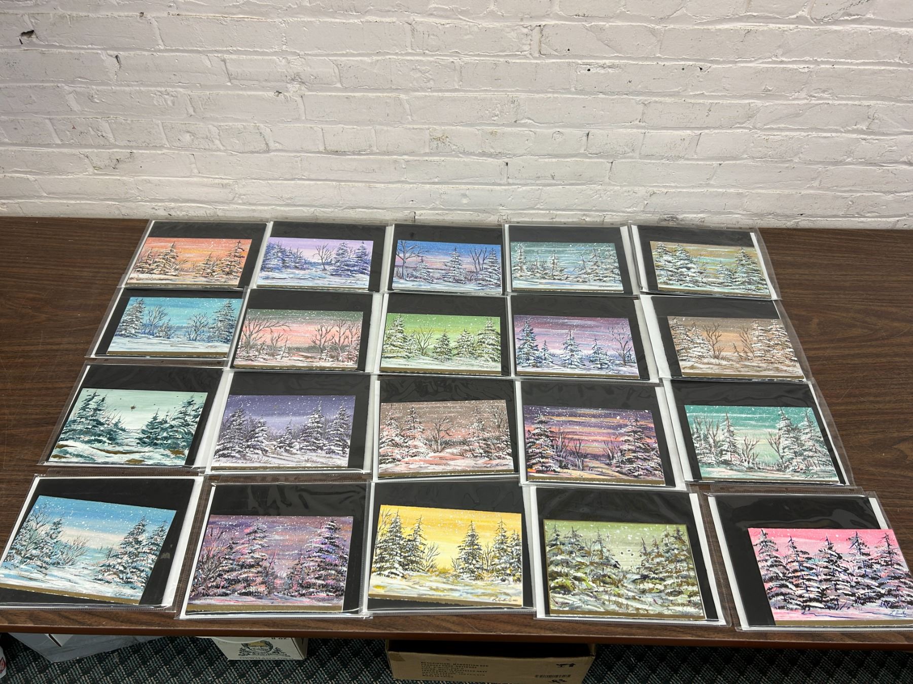 Lot of 20 Lillian Austin Winter Scenes Matted Paintings 9x11