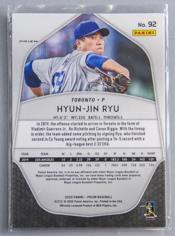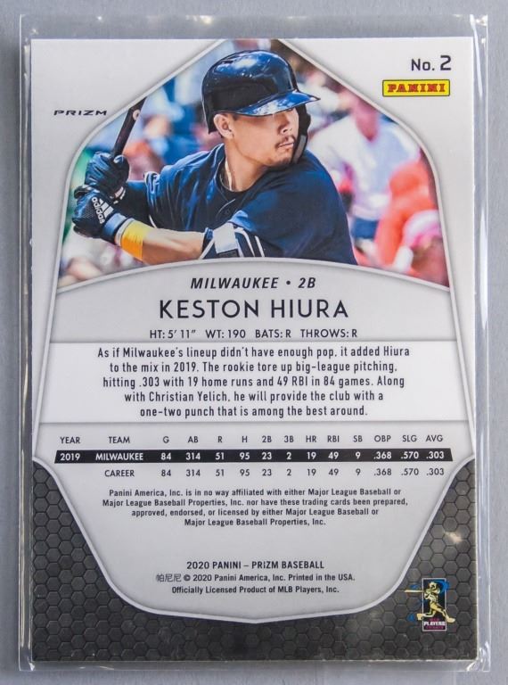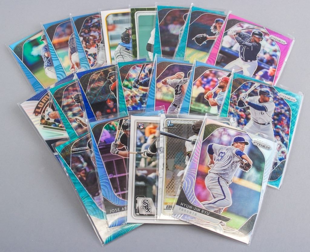 Lot of 20 baseball cards, produced by Panini in 2020. With player photo on one side and stats on the other.