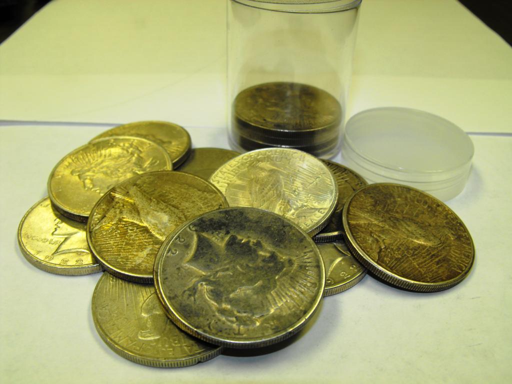 A lot of 20 assorted date 1920's Peace silver Dollars. Varying grades from g-xf