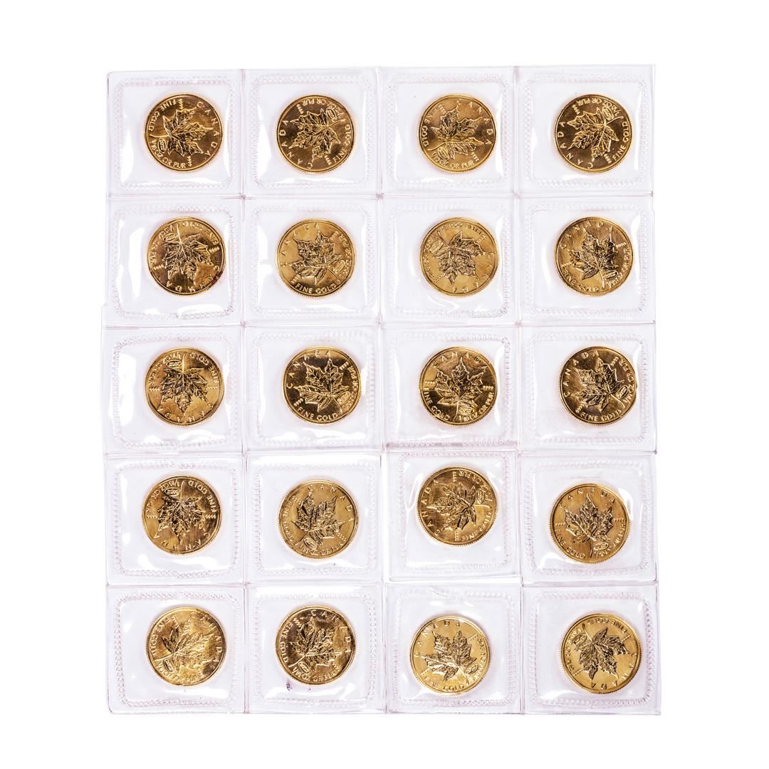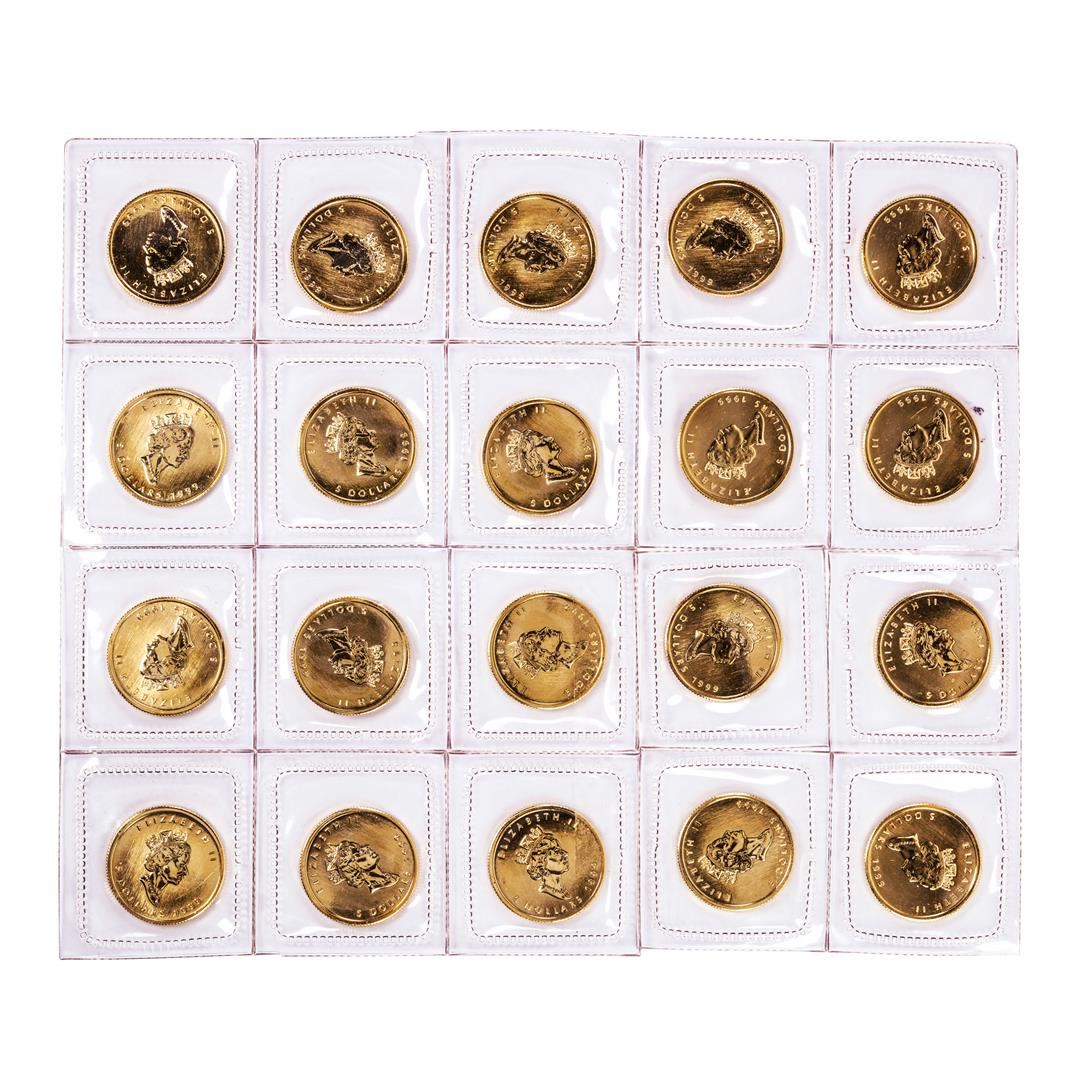 One Lot of (20) Sealed 1999 Canadian $5 Maple Leaf Gold Coins.