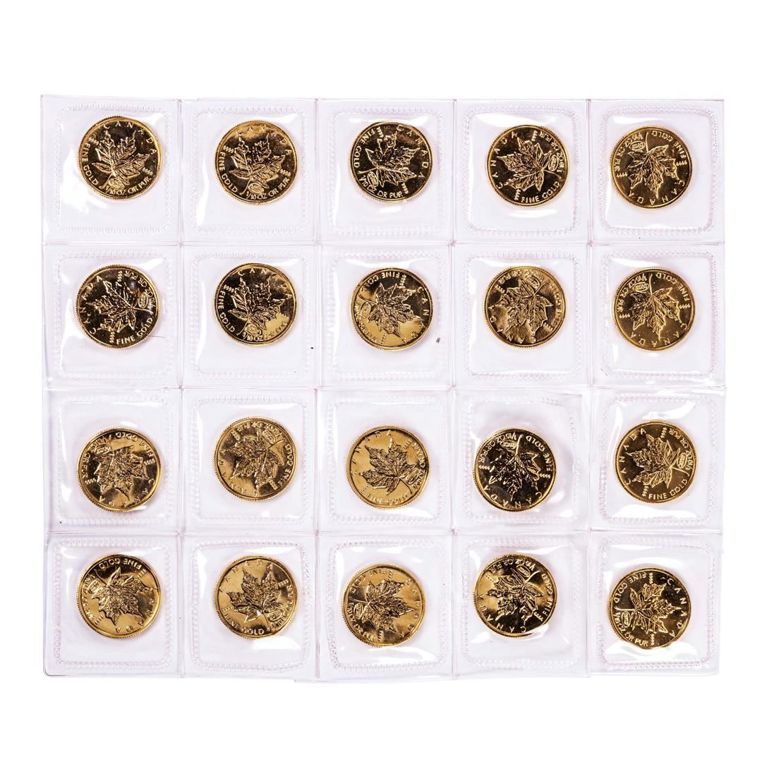 One Lot of (20) Sealed 1999 Canadian $5 Maple Leaf Gold Coins.