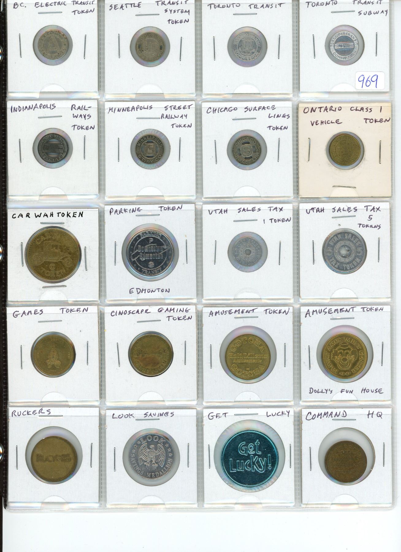 Lot of 20 Tokens including Transit, Railway, Street Railway, Vehicle, Car Wash, Parking, Sales Tax, Gaming Tokens, Amusement, Ruckers, Savings, Get Lucky & Command HQ.
