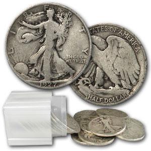 A roll $ 10 fv, Walking Liberty's- Various dates and grades.