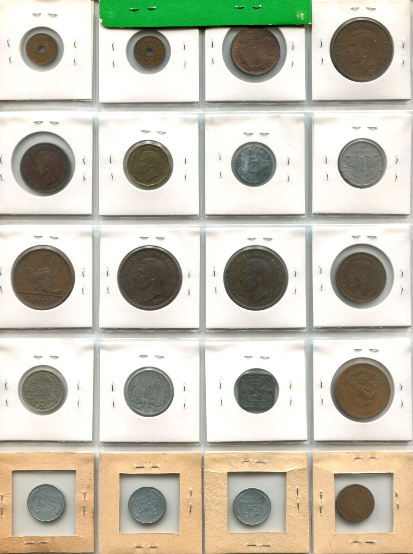 Lot of 20 World War II Coins from Australia, Chile, Denmark, Vichy France, German Third Reich, Great