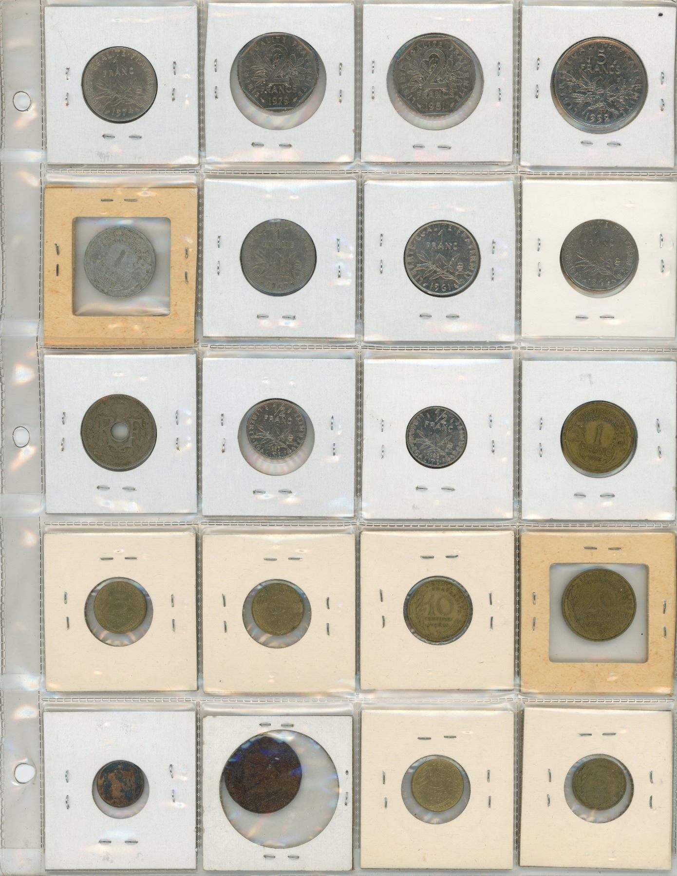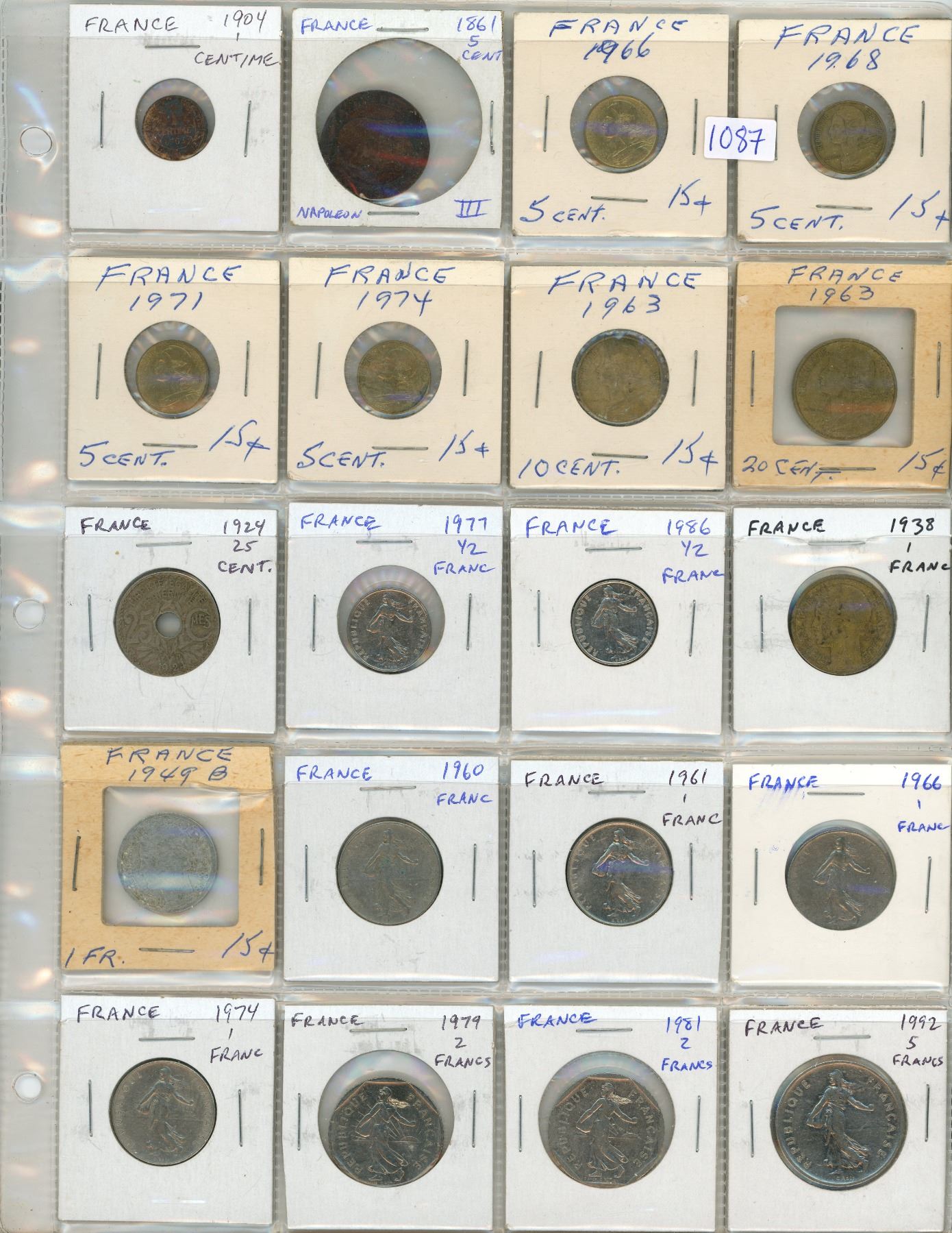 Lot of 20 coins from France. Includes 1861 5 Centimes depicting Emperor Napoleon II plus more modern coins.