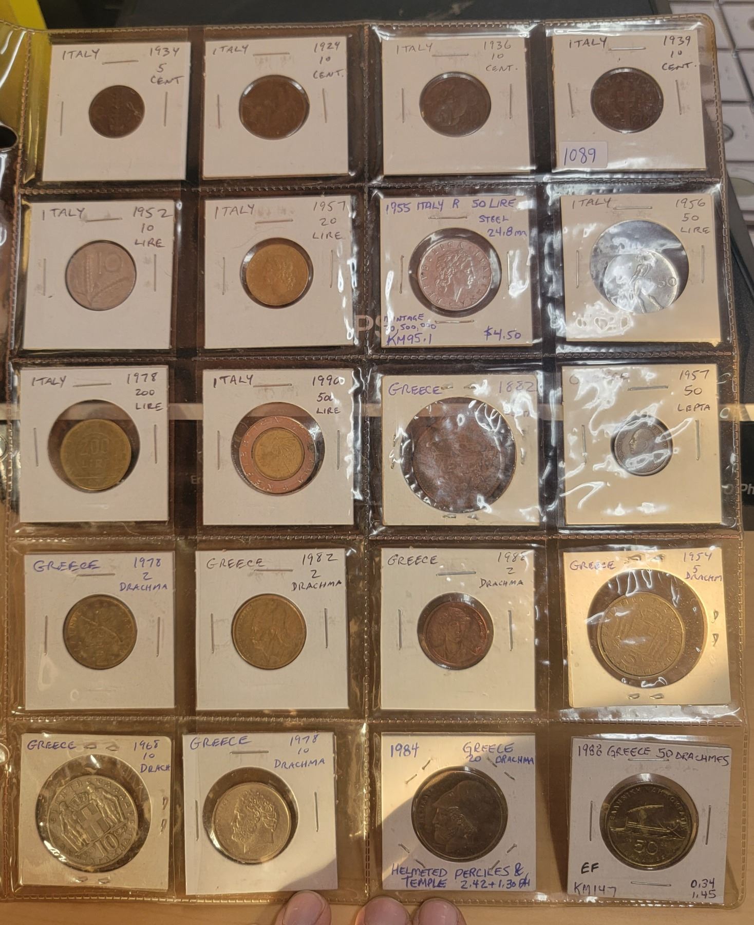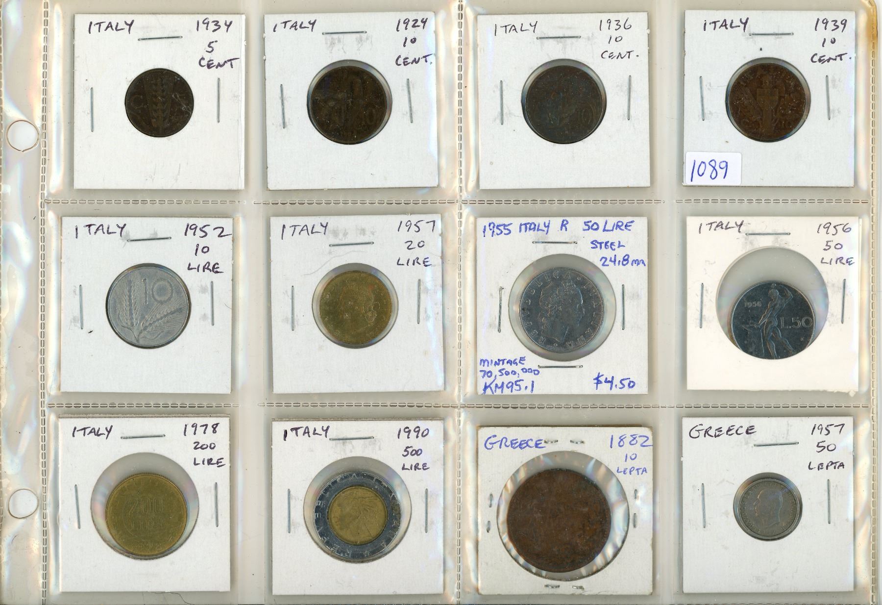 Lot of 20 coins from Italy & Greece, including 1882 10 Lepta.