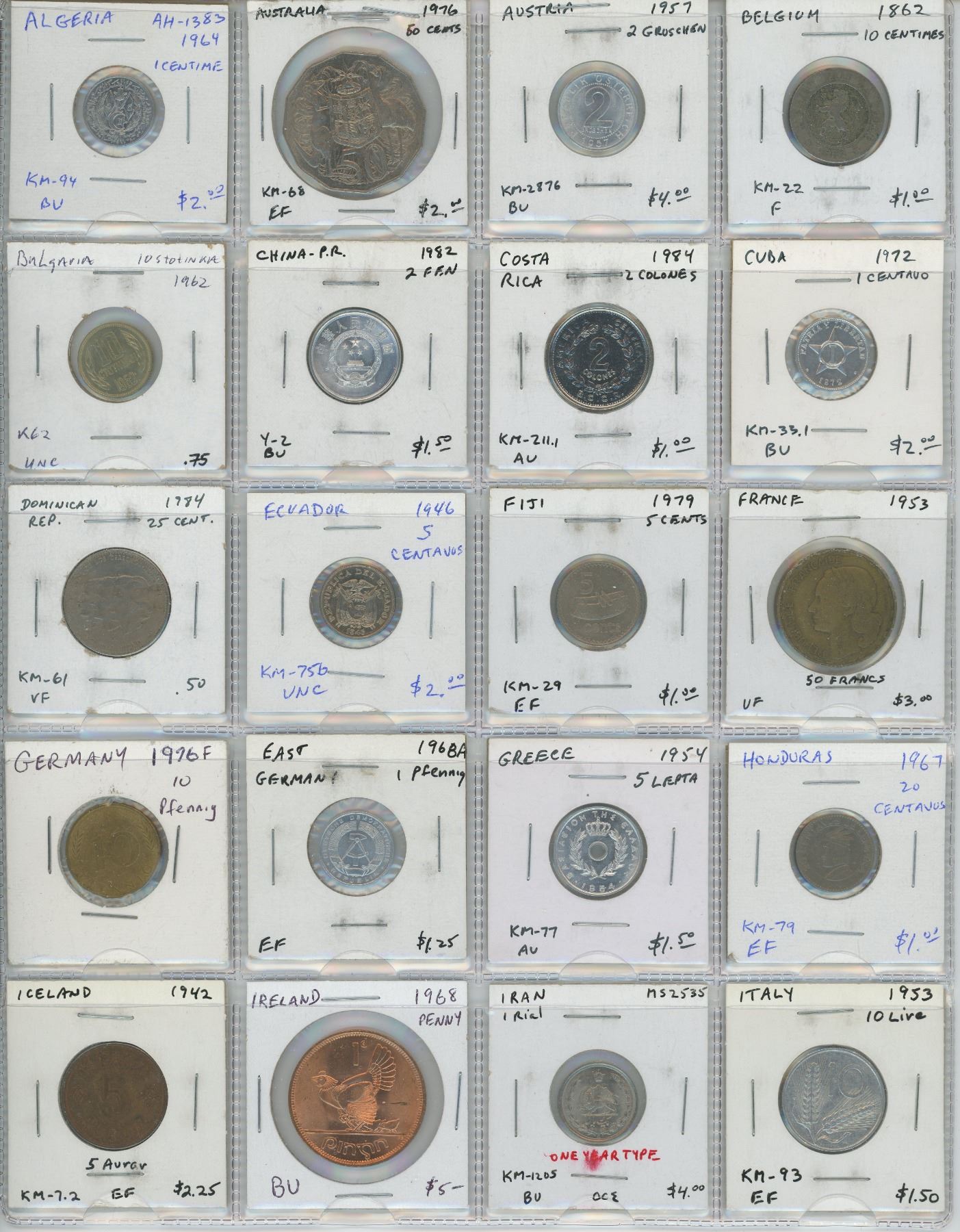 Lot of 20 world coins from 20 different countries: