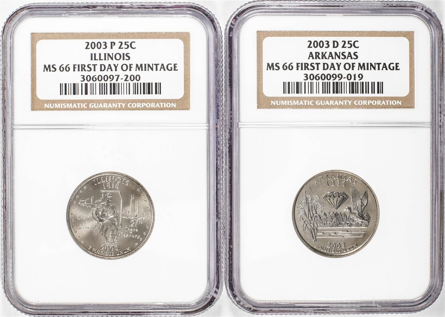 Lot of 2003-P & 2003-D State Quarter Coins NGC MS66 First Day of Mintage