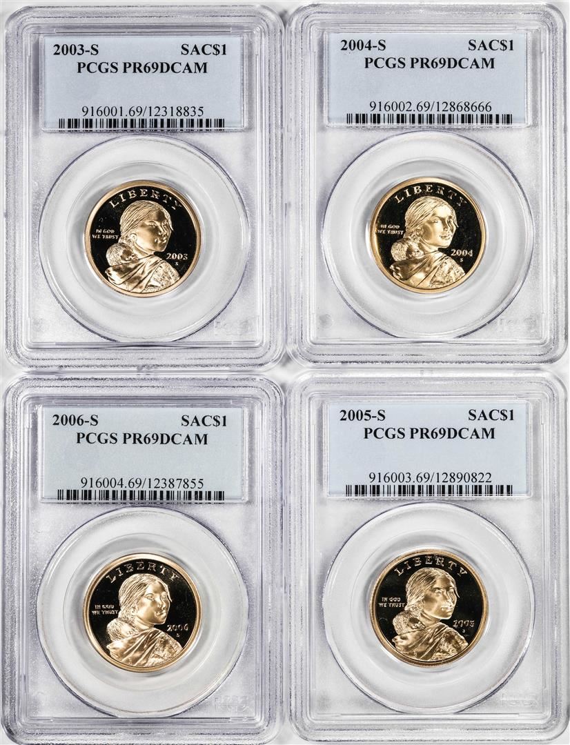 One Lot of 2003-S to 2006-S Proof $1 Sacagawea Coins PCGS PR69DCAM. PCGS Graded.