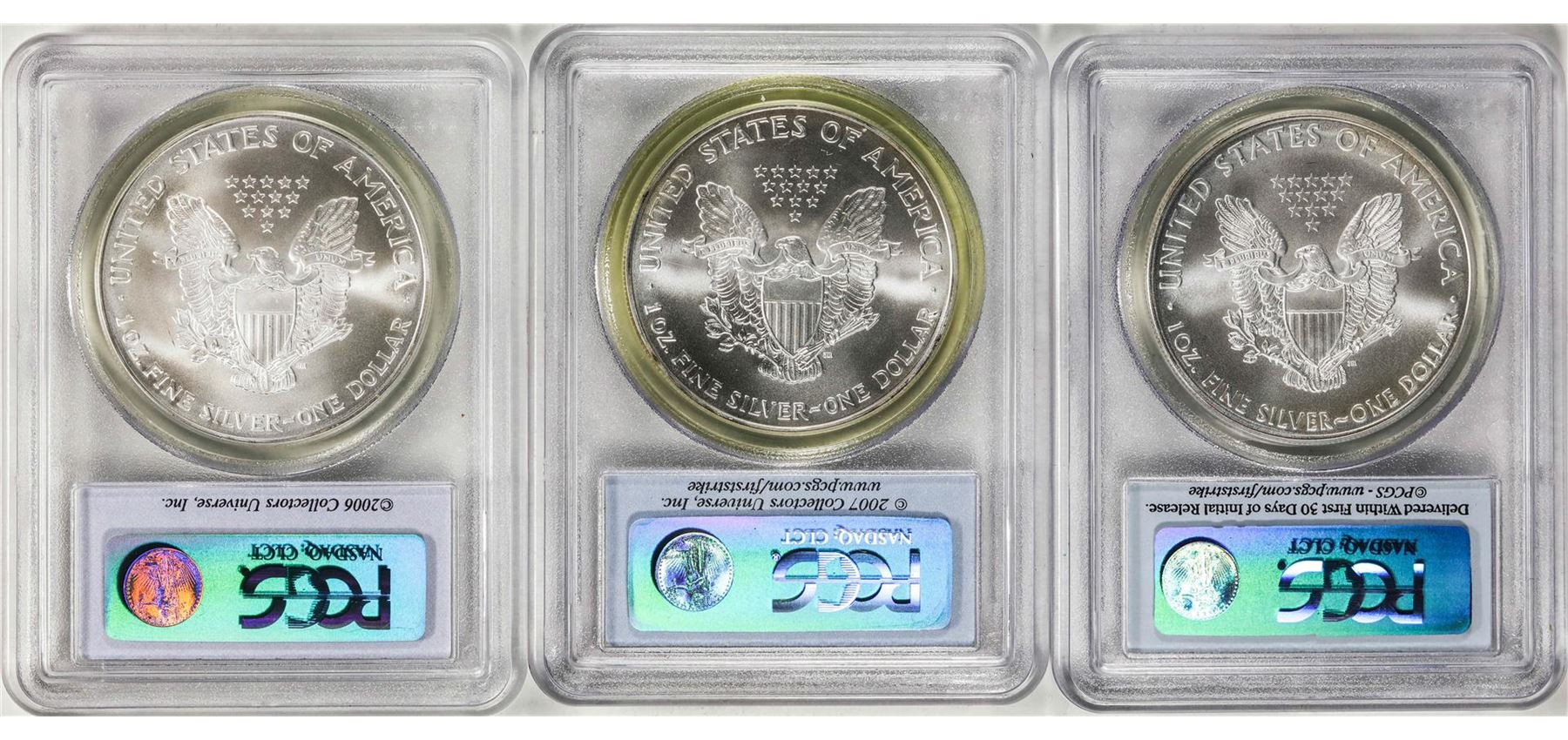 One Lot of 2006-2008 $1 American Silver Eagle Coins PCGS MS69 First Strike. PCGS Graded.