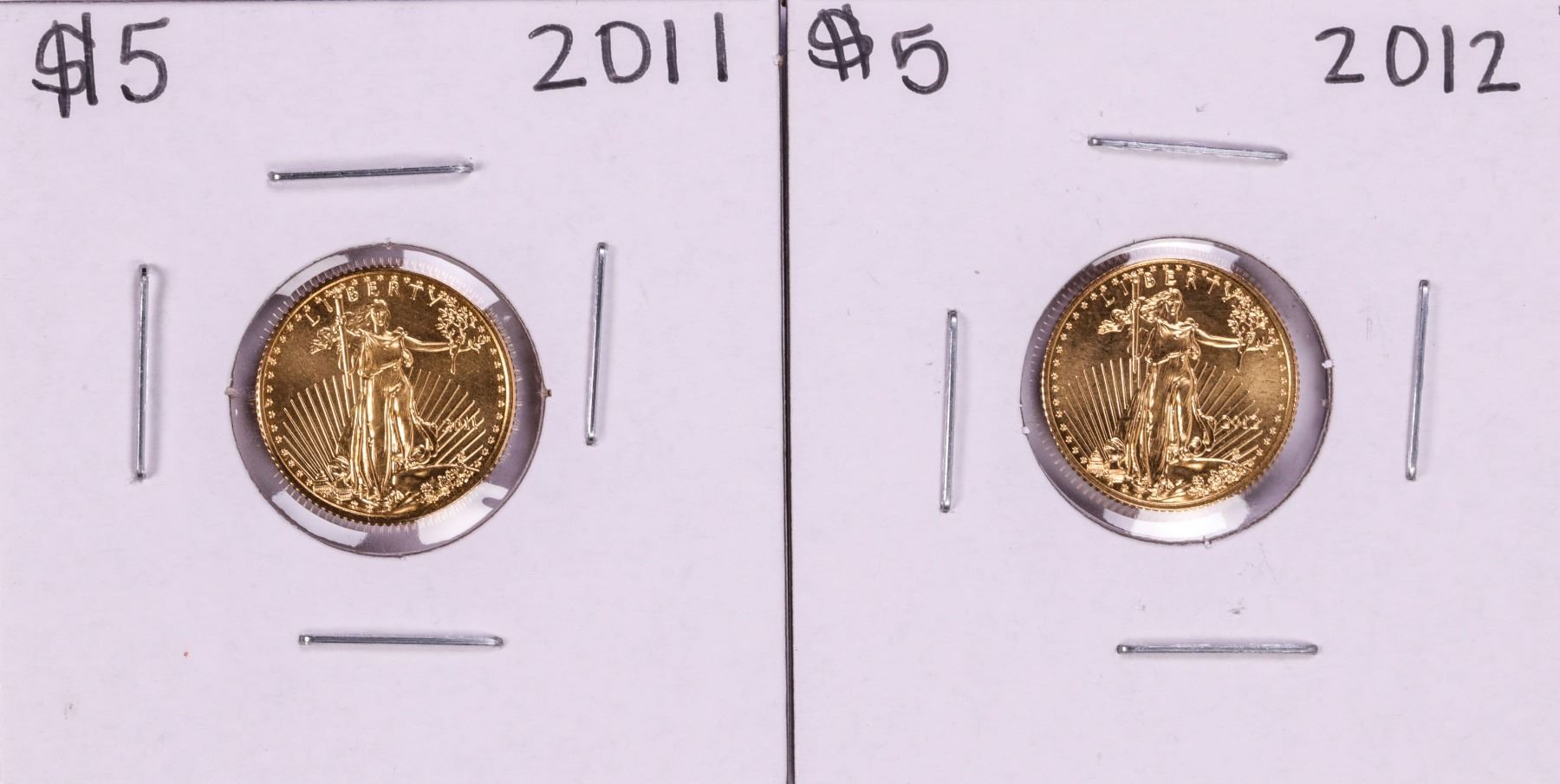 One Lot of 2011-2012 $5 American Gold Eagle Coins.