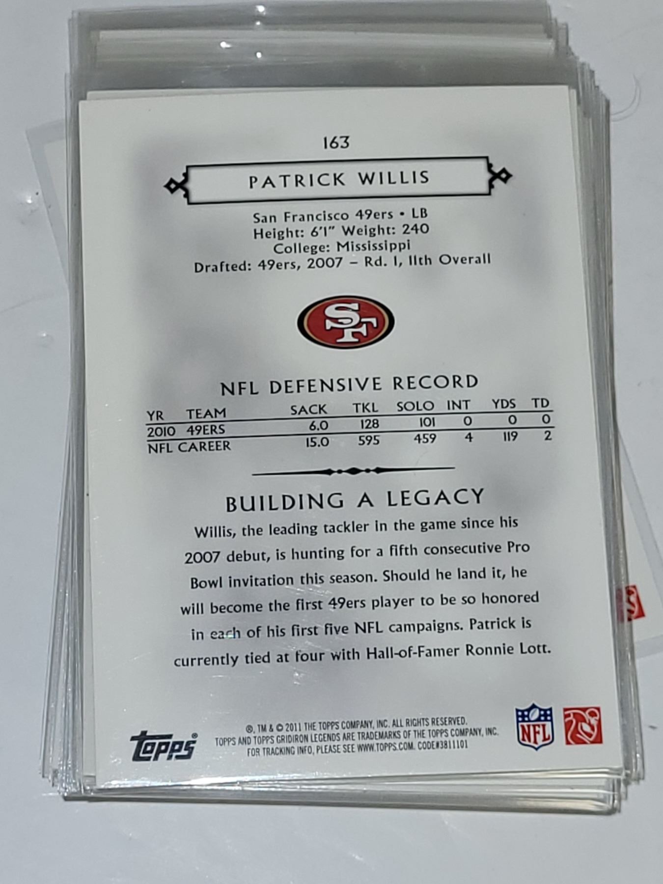 Lot of 2011 Topps Top Legends Sleeved NFL Football Cards - Mint