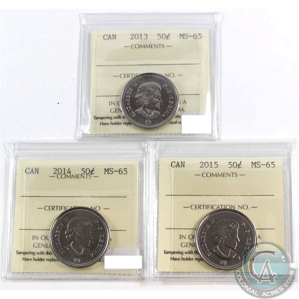 Lot of 2013-2015 Canada 50-cent ICCS Certified MS-65. 3pcs
