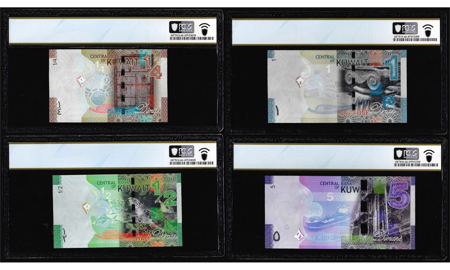 Lot of 2014 Kuwait 1/4, 1/2, 1 & 5 Dinar Notes PCGS Gem Uncirculated 66PPQ